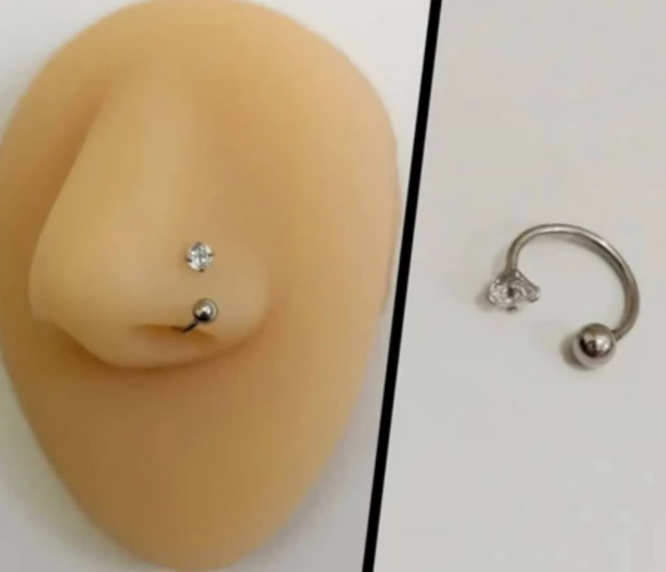 پیرسینگ حلقه ای بینی فول نگین نقره