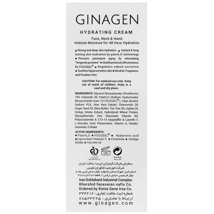 کرم آبرسان ژیناژن با ترکیباتی مانند سدیم pca و سرامید باعث رطوبت رسانی عمیق به پوست صورت شده، همچنین از خشکی، التهاب و قرمزی پوست جلوگیری میکند. کرم آبرسان ژیناژن پوست چرب علاوه بر آبرسانی به پوست، با کمک خاصیت آنتی باکتریال عصاره روغن درخت چای، مانع از رشد باکتریهای مولد جوش و آکنه می شود. ویتامین c موجود در کرم آبرسان ژیناژن، پوست را روشن و شفاف تر می نماید.