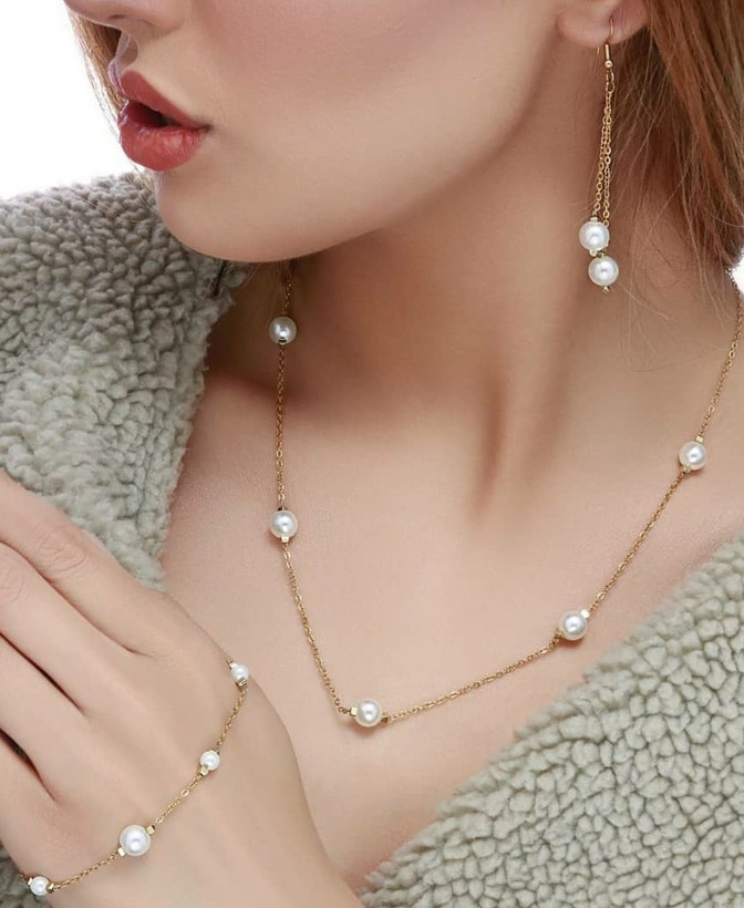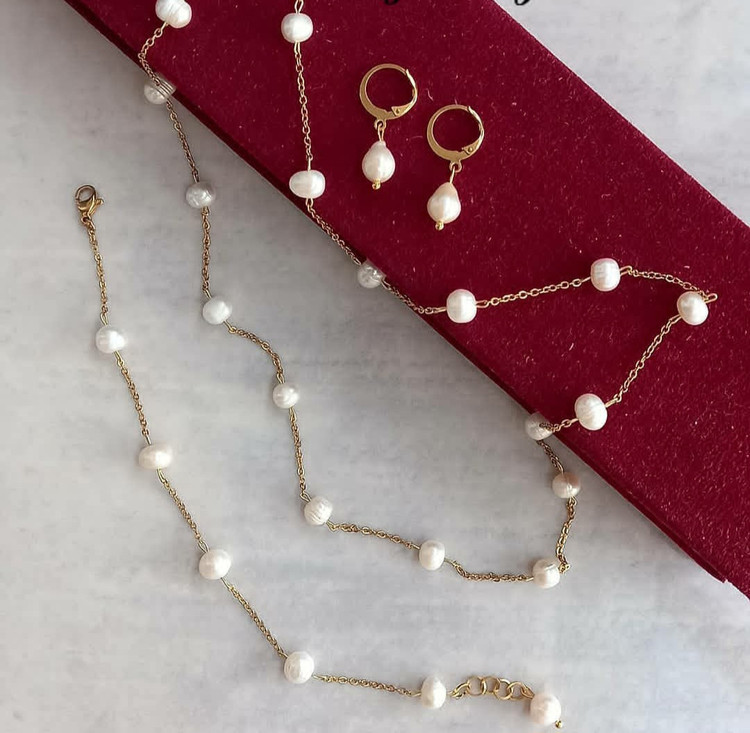 ست کامل مرواریدی شامل دستبند .گردنبند و گوشواره میشود کاملا رنگ ثابت ضد حساسیت